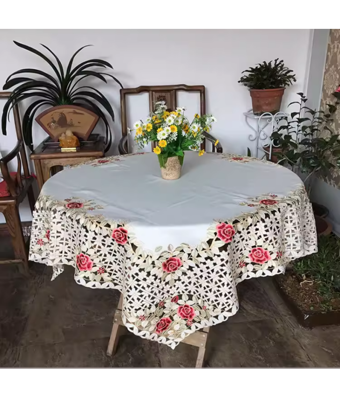 Jacquard Floral Embroidered Square Tablecloth, Fabric Vintage Rose Table Cloth