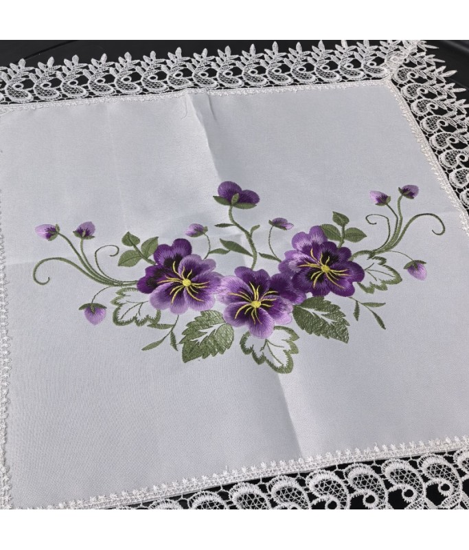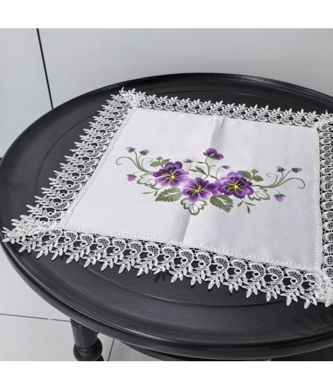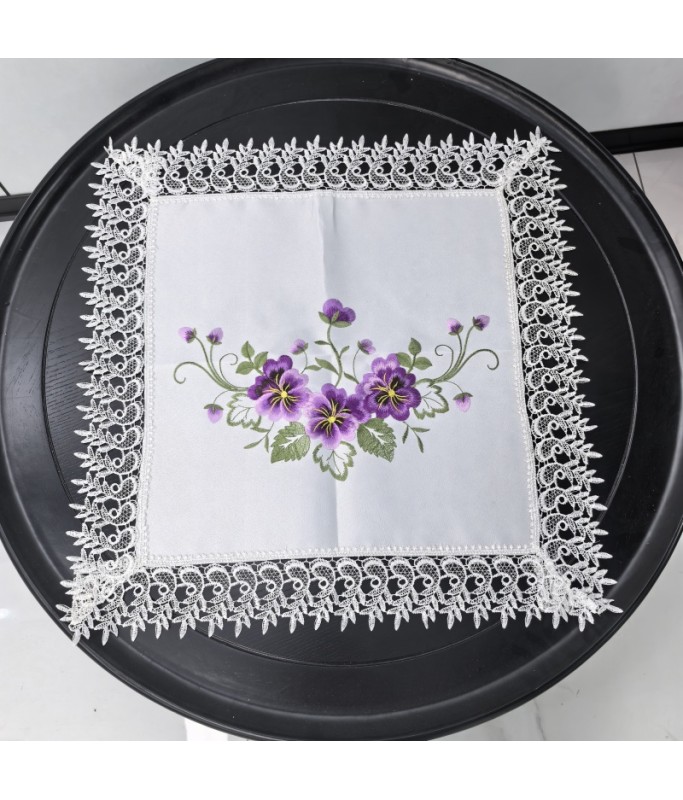 Lace Square Table Placemats,Purple Flower Embroidered Doilies Cup Mat