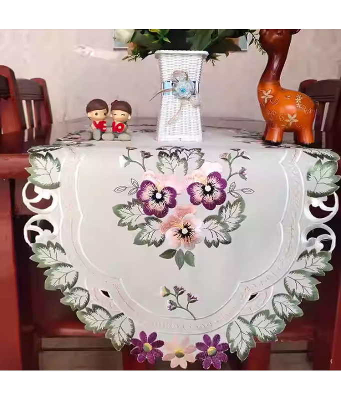 Purple Flower Embroidered Table Runner,Euro Style Dining Table Cover for Home Kitchen Decoration