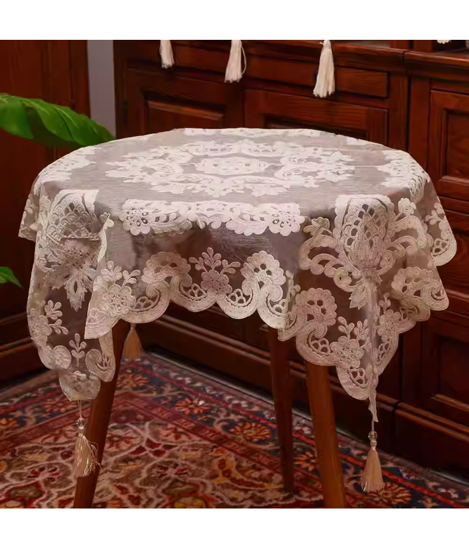 Embroidered Lace Square Tablecloth, Euro Style Dining Table Cover for Home Kitchen Decoration