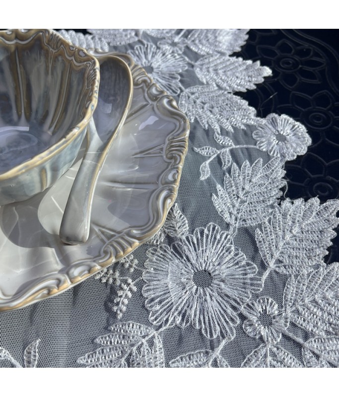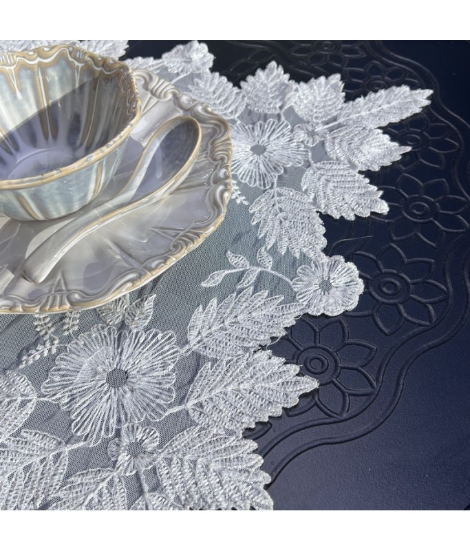 Beige Lace Table Placemats, Exquisite Flower Embroidered Doilies Cup Mat
