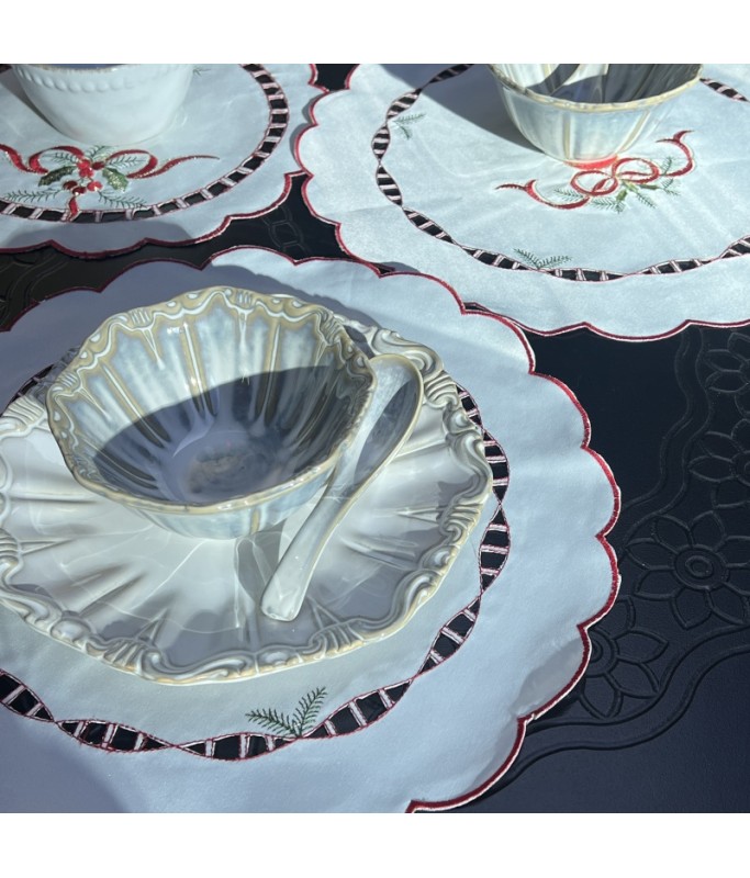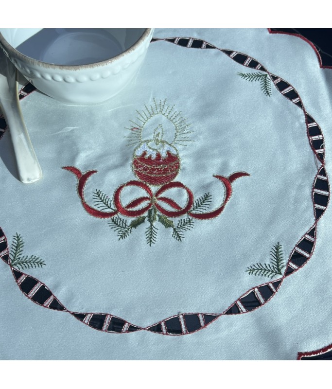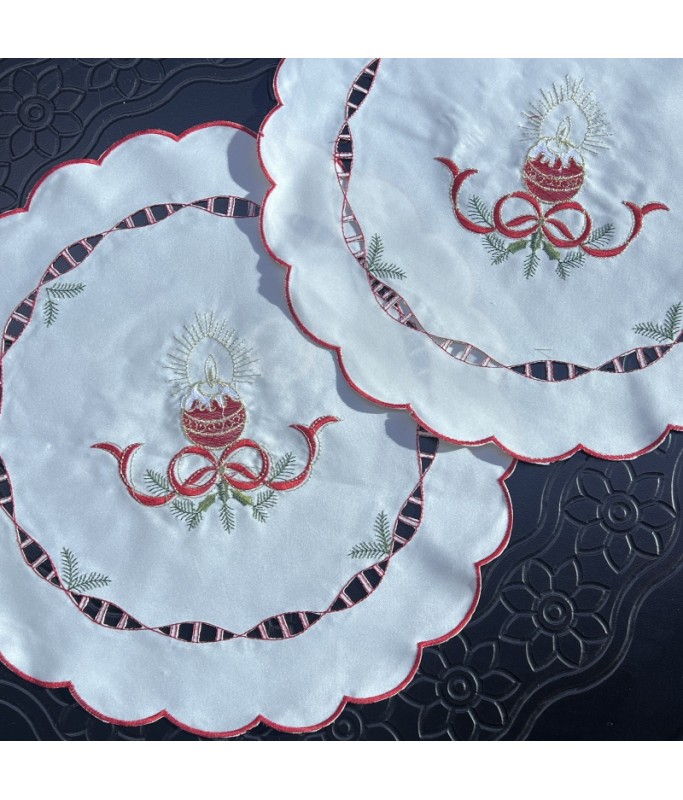 Round Table Placemats, Christmas Embroidered Doilies Cup Mat