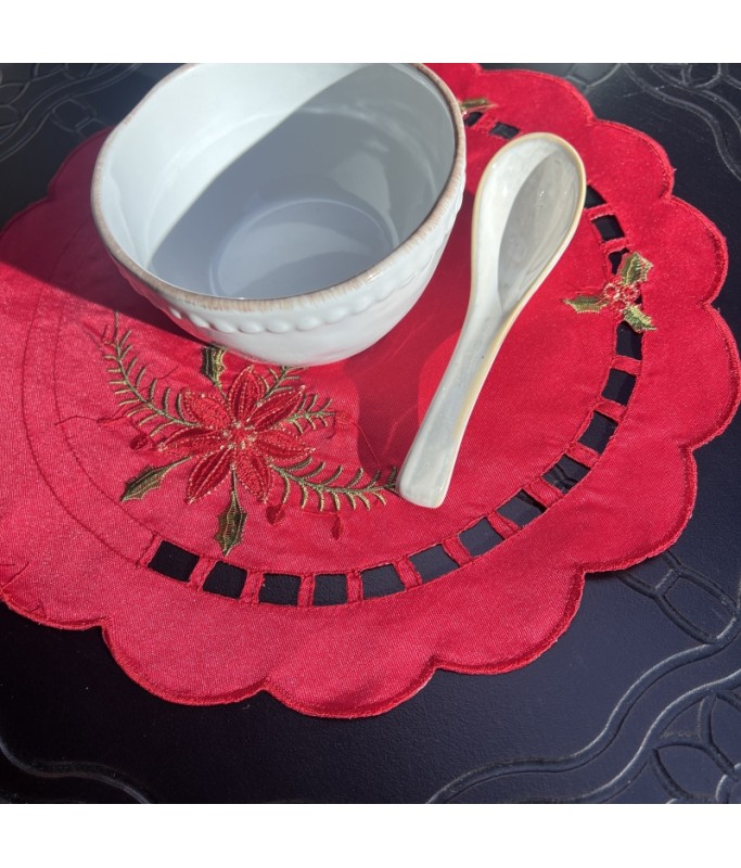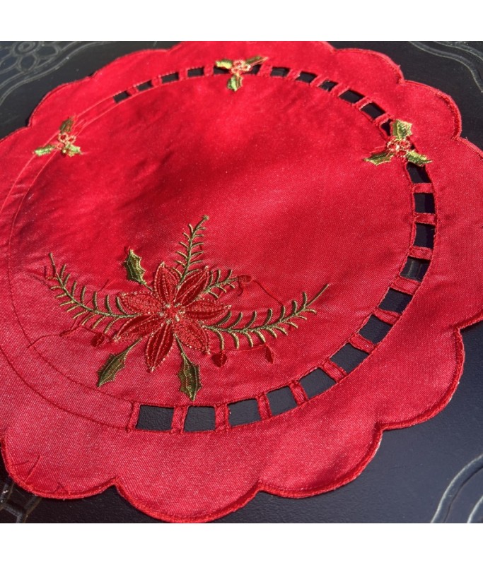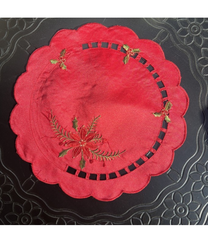 Round Table Placemats, Christmas Embroidered Doilies Cup Mat