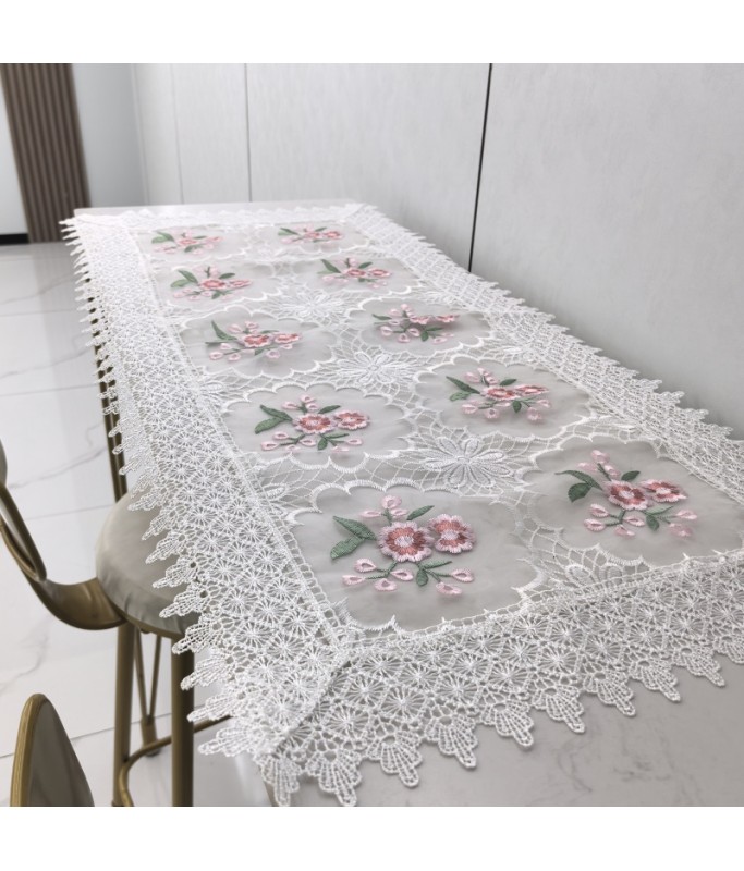 Lace Embroidered Table Runner,Vintage Floral Dining Table Cover for Home Kitchen Decoration