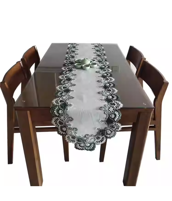 Green Lace Embroidered Table Runner,Euro Style Dining Table Cover for Home Kitchen Decoration