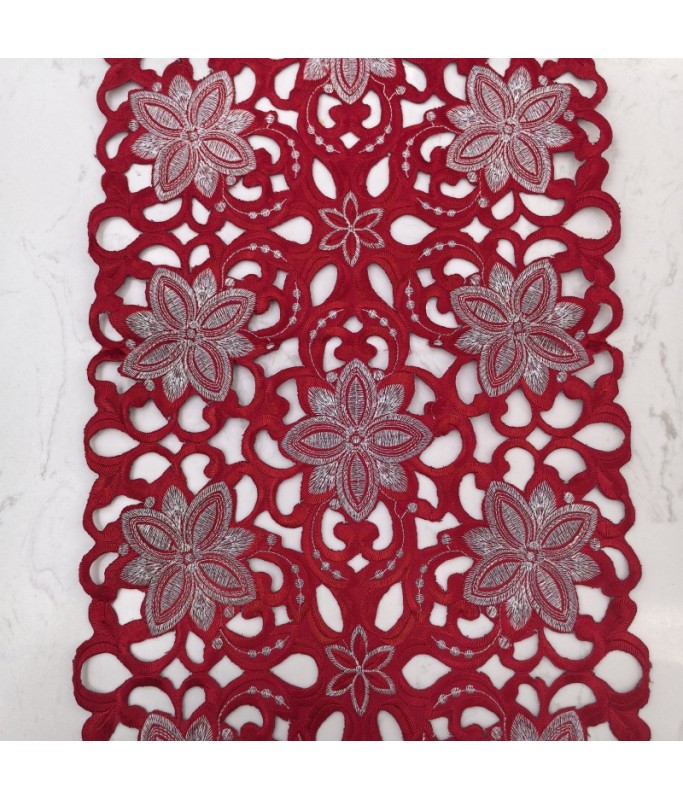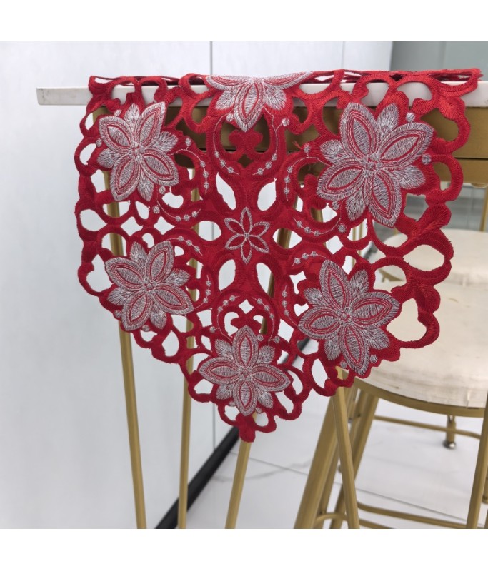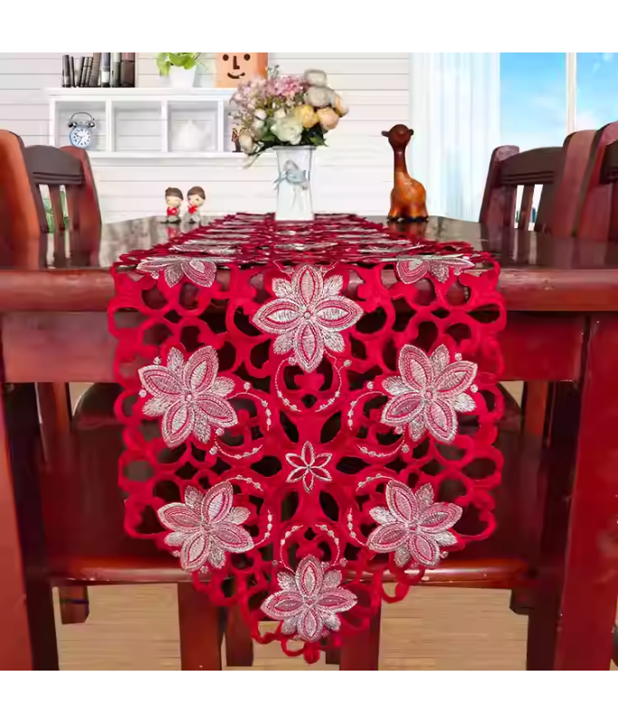 Red Flower Embroidered Table Runner,Euro Style Dining Table Cover for Home Kitchen Decoration