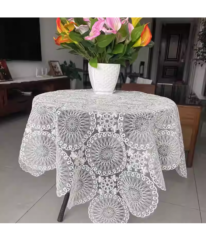 White Lace Square Table Cloth,Euro Style Dining Table Cover for Home Kitchen Decoration