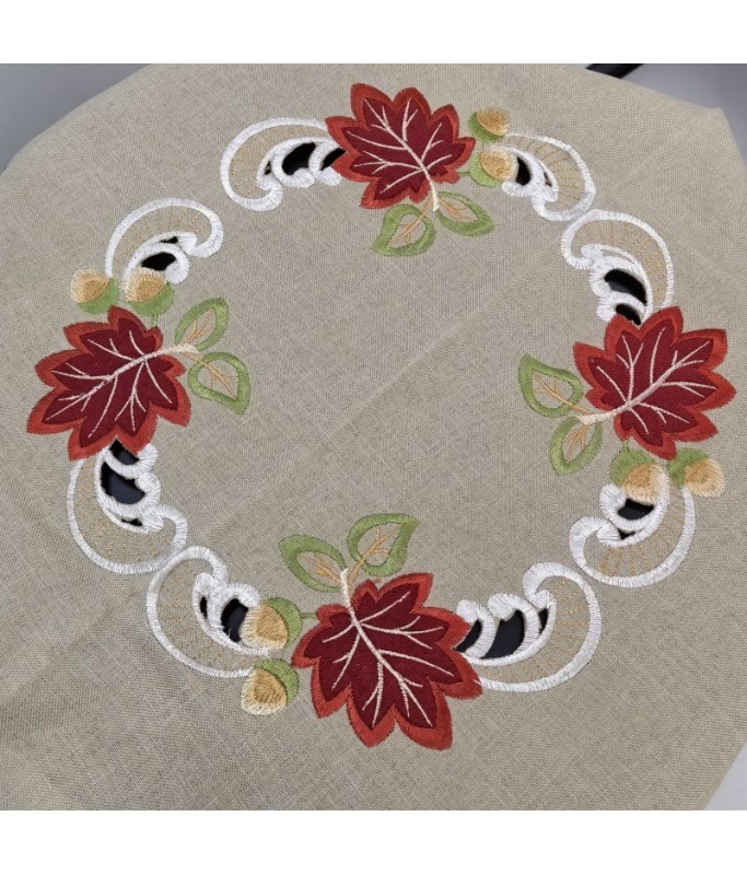 Maple Leaf Square Table Cloth,Vintage Floral Embroidered Dining Table Cover for Home Kitchen Decoration
