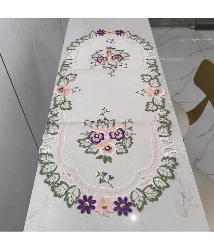 Vintage Flora Embroidered Table Runner, Exquisite Flower Dining Table Cover for Home Kitchen Decoration