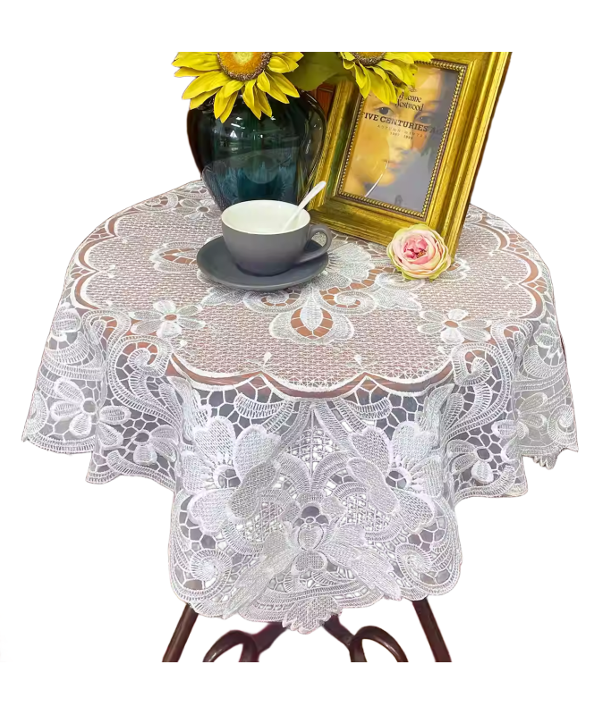 Embroidered Lace Square Tablecloth,Vintage Floral Dining Table Cover for Home Kitchen Decoration
