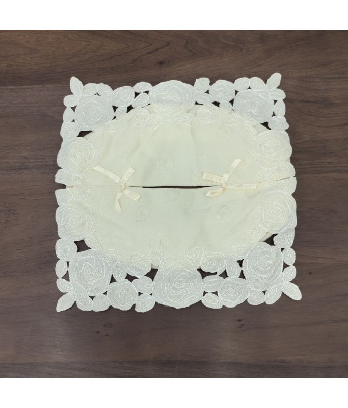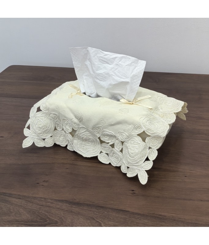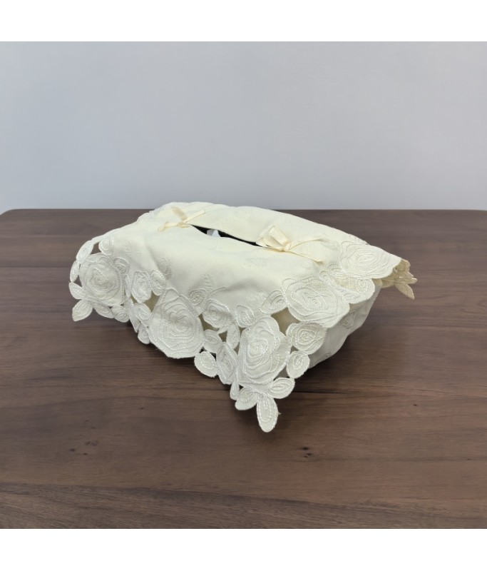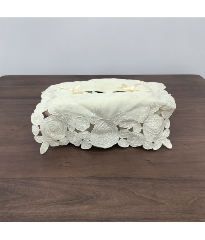 White Fabric Tissue Box Cover,Embroidered Jacquard Linen Tissue Holder