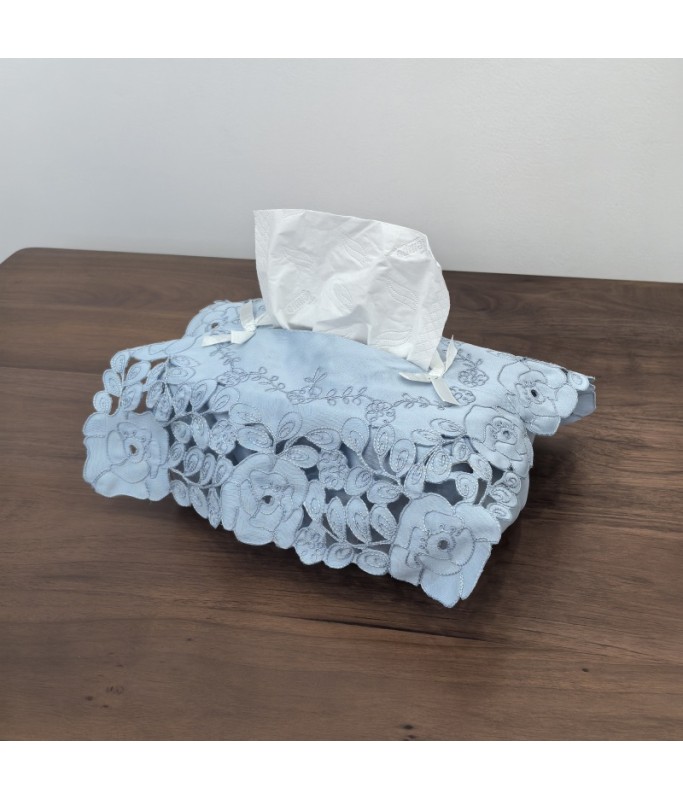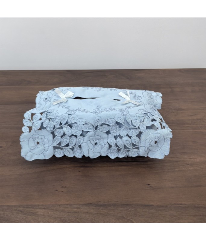 Blue Fabric Tissue Box Cover,Embroidered Jacquard Linen Tissue Holder