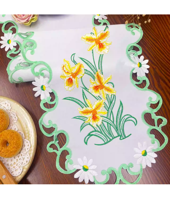Daffodil Embroidered Table Runner, Fabric Dresser Runner for Home Kitchen Dining Tabletop Decoration