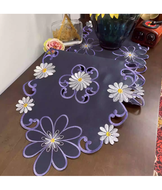 Daisy Embroidered Table Runner, Fabric Dresser Runner for Home Kitchen Dining Tabletop Decoration