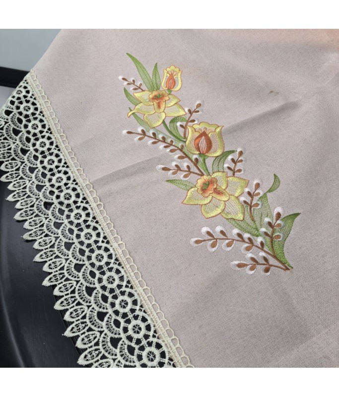 Pink Linen Tablecloth, Floral Pattern Embroidered Table Cover