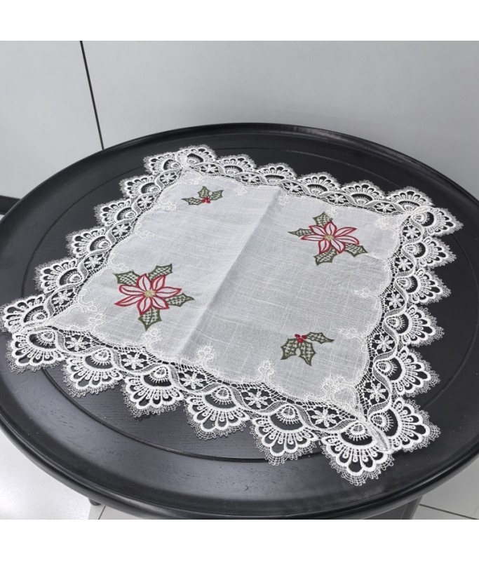 Lace Square Linen Table Placemats,French Style Embroidered Doilies Cup Mat