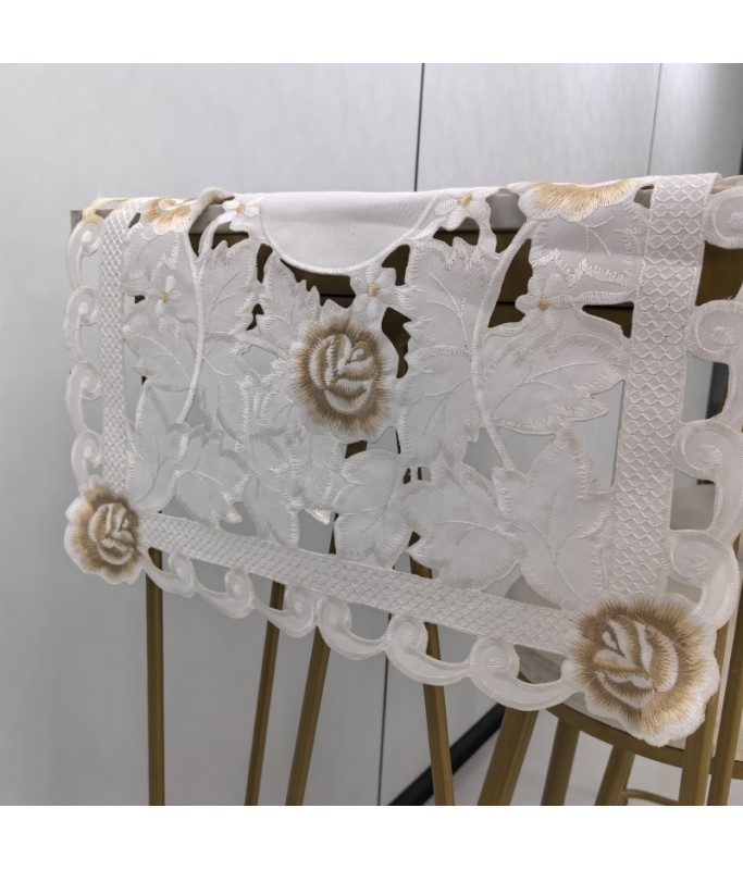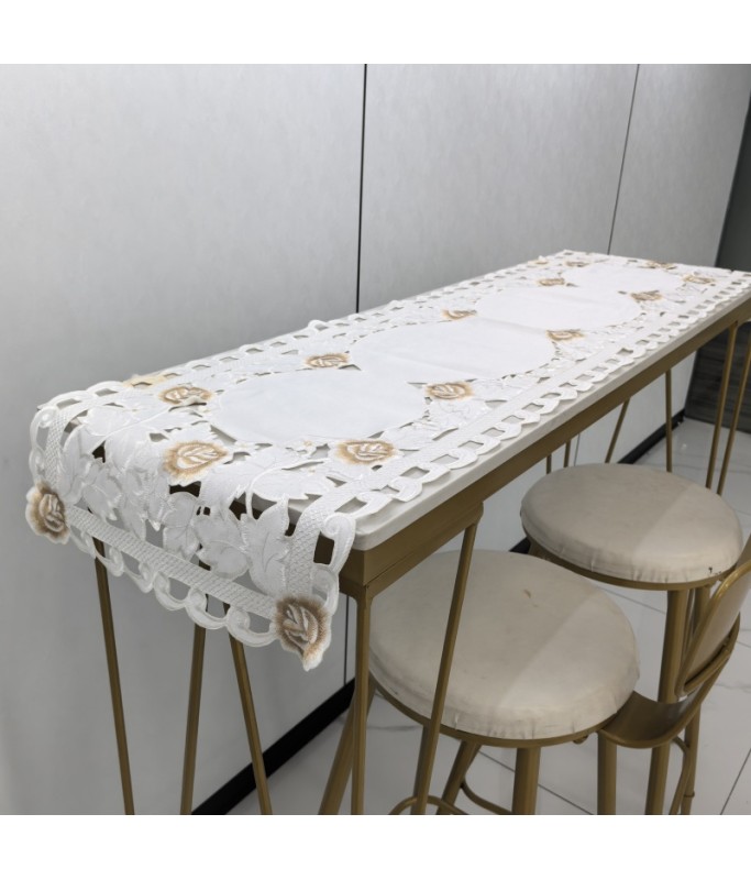 Burnt-edge Rose Embroidered Table Runner,Euro Style Dining Table Cover for Home Kitchen Decoration
